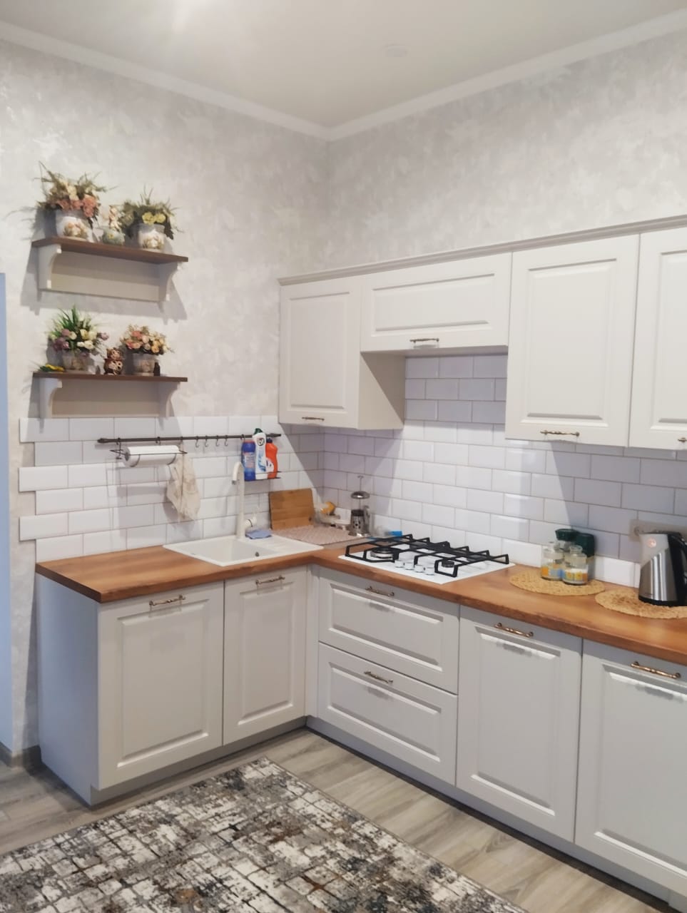 Дважды заказывала кухню в Ангстрем! Сначала заказала себе кухню Версаль в частный дом, в приоритете было подобрать кухню под гостиную Кантри в цвете Валенсия+Клен старый. Дизайнер подобрала пленку для фасадов максимально приближенную к Валенсии, а столешницу и декоративные полки к Клену старому, получилась отличная комбинация, попадание на все 100! Мы постоянные покупатели фирмы Ангстрем, поэтому в качестве их мебели никогда не сомневаемся, проверено годами, всегда возвращаемся именно сюда!