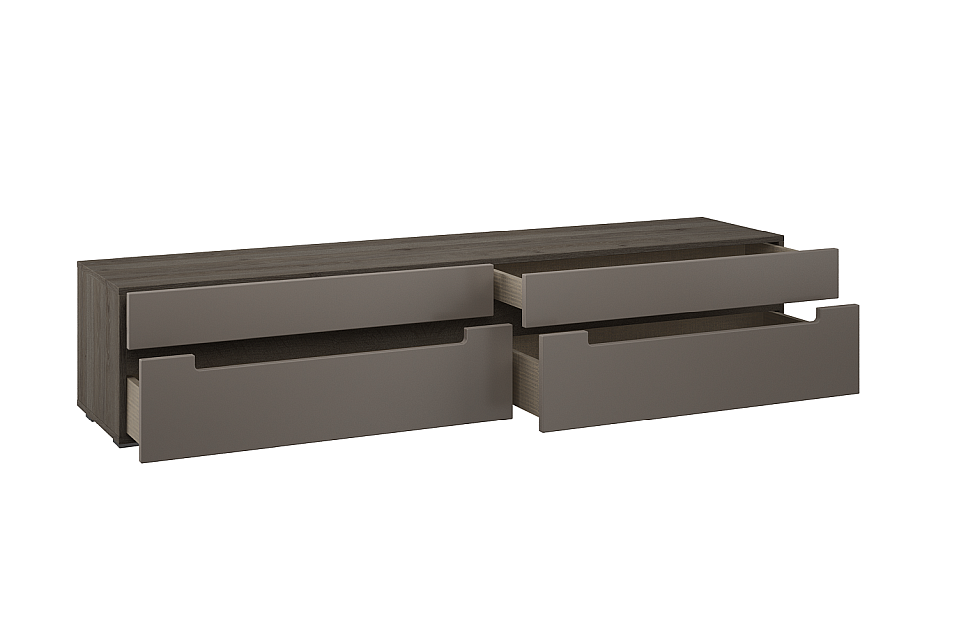 - Тумба с четырьмя выдвижными ящиками — два ящика друг над другом в каждом отделении тумбы;