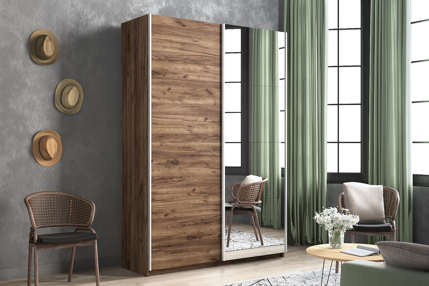 – описание: стиль минимализм, лофт, современный, размер 230x140x57 см, цвет дуб табачный, назначение для одежды.