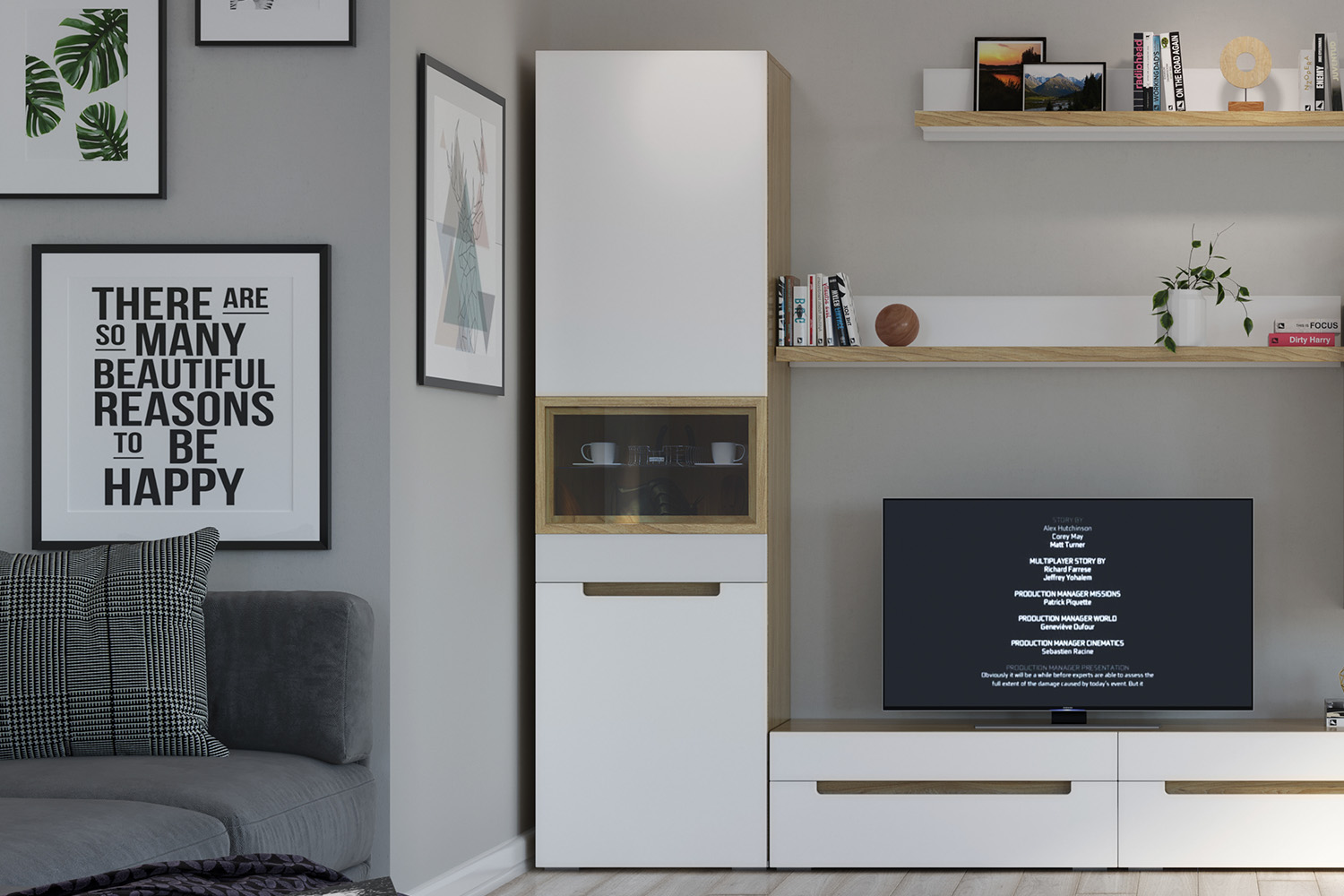 – описание: размер 213.2x60.1x41.6 см, стиль современный, минимализм, назначение для гостиной, цвет швейцарский вяз, белый.
