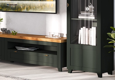 Тумба Эмили под телевизор с выдвижным ящиком Олива темная, Таксония
